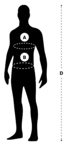 Méret | D - Magasság | A - Mell | B - Derék |